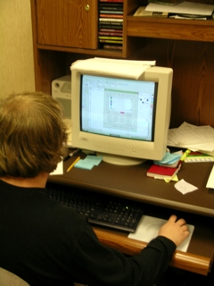 My name is Jamie Barrow and my job at Southern Research is that of Graphic Specialist. I mainly specialize in computer aided drafting, or CAD. I produce many of the site maps for the company. There are several ways in which I do this. The first, and most common, way is by taking a site map drawn in the field, scanning it into a CAD program and then tracing it. DesignCAD, the program I use the most, utilizes layers. I put the scanned image on one layer and on another layer I draw lines that correspond to the lines on the hand-drawn site map. Then I turn off the layer with the scanned site map and all that can be seen is the map I produced on the computer. The map is then printed or saved for use in a report. This method is also used (especially at the Leake Site) to create plan and profile drawings of excavated features and test units.